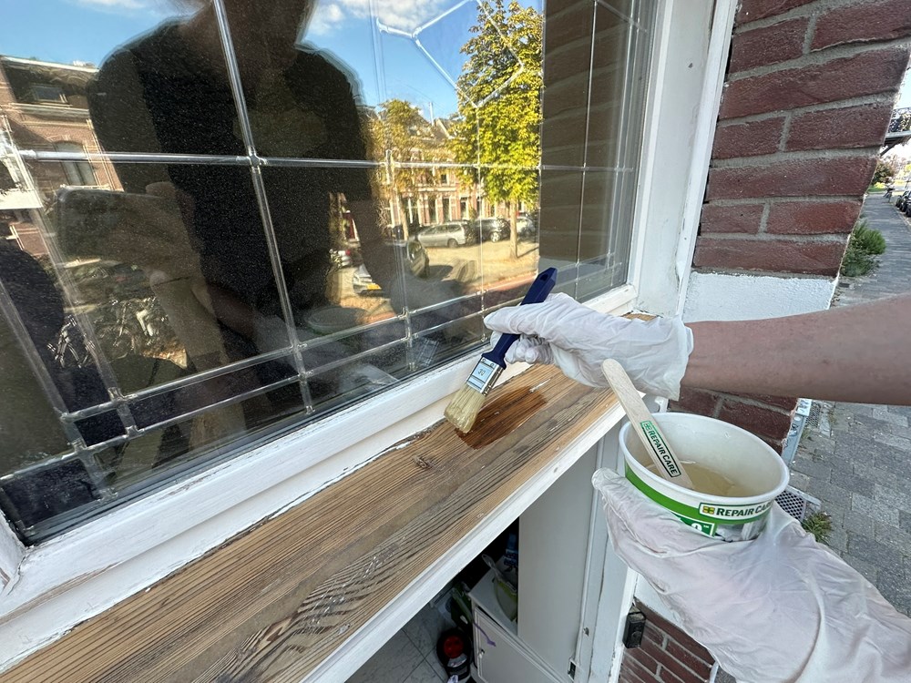 - Het volledig afdichten van kopse vlakken en onbeschermd hout.